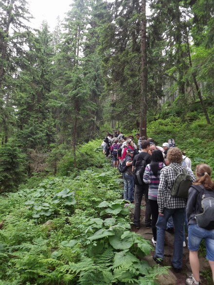 Po przyjeździe autokarem na przełęcz Krowiarki (1012 m n.p.m.) i wykupieniu biletów wstępu, do Babiogórskiego Parku Narodowego rozpoczęliśmy, jak się później okazało, dość poważną i męczącą wyprawę wysokogórską.