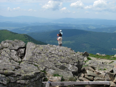 Po około godzinie męczącego marszu przez las wyszliśmy na Sokolicę (1367 m.).