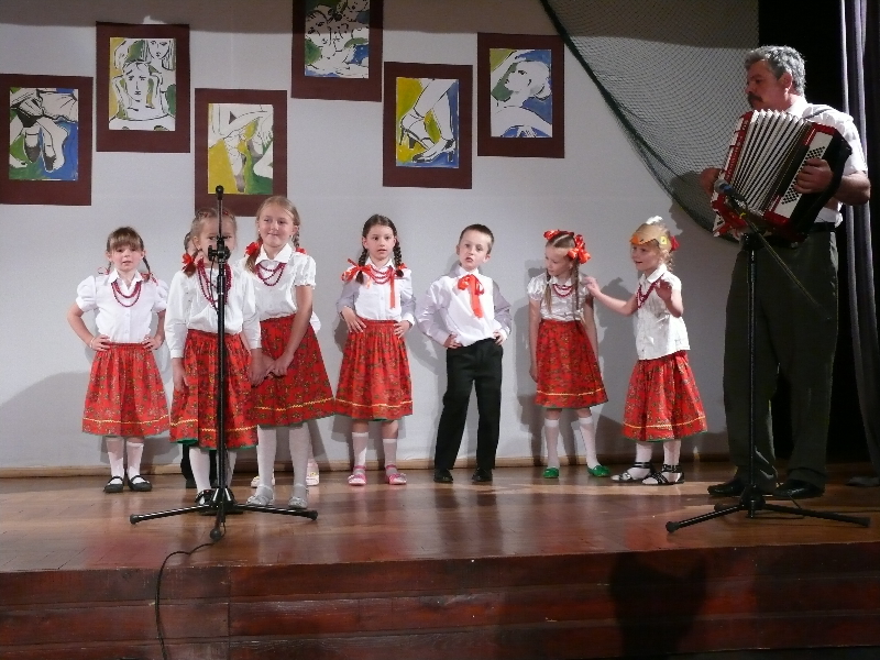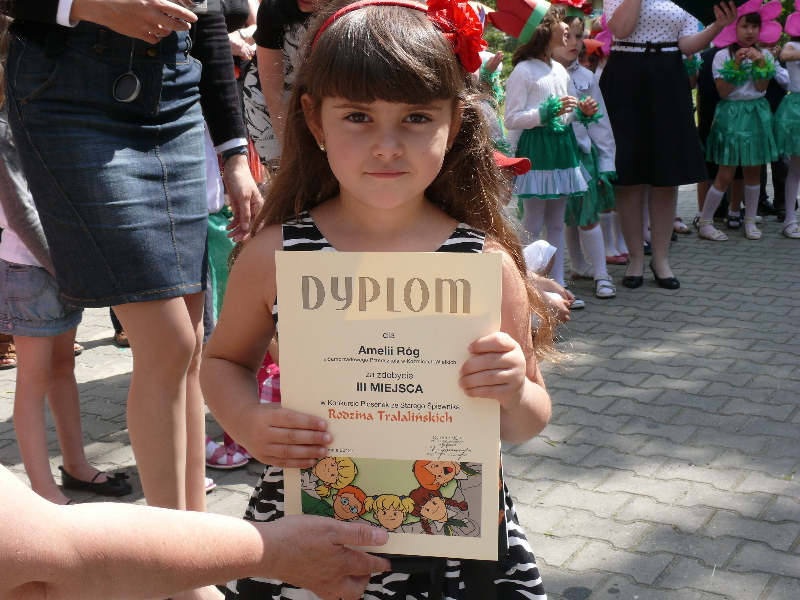 W miesiącu maju dzieci z grupy III wzięły udział w konkursie piosenek ze starego śpiewnika „Rodzina Tralalińskich" zorganizowanym przez Młodzieżowy Dom Kultury w Krakowie przy ul. Beskidzkiej. Do konkursu przystąpiliśmy w kategorii zespoły z piosenką „Wyleciał ptaszek z łobzowa" oraz trójką solistów: Oliwką Kurek (6 lat) oraz Amelką (5 lat) i Gabrysią Róg (6 lat). Dziewczynki pod kierunkiem Pana Wojciecha Grochala (Dziadka Amelki i Gabrysi) zaprezentowały piosenki: „Pochwała Krakowa", „Miała baba koguta" oraz „Jadą, jadą misie".