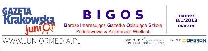 Ukazał się właśnie 8. numer „BIGOSu" - gazetki redagowanej przez uczniów Szkoły Podstawowej w Koźmicach Wielkich. Znajdziesz w niej min. relacje z życia szkoły; przeczytasz o sukcesach uczniów w sporcie i w nauce - poznasz najlepszych z najlepszych; dowiesz się, jak być bezpiecznym w Sieci; jak zostać prawdziwym dziennikarzem.