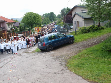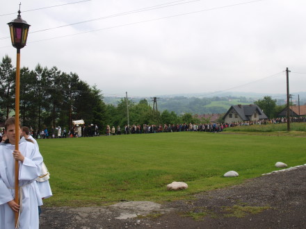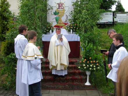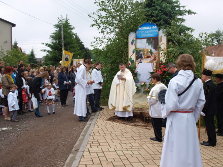 30 maja po Mszy świętej o godz. 10.00, którą odprawił ks. proboszcz Milan Michalak, wyruszyliśmy z kościoła ulicami naszej wioski w uroczystej procesji z Najświętszym Sakramentem w monstrancji, z feretronami, chorągwiami, ministrantami i lektorami, dziećmi I- komunijnymi, górnikami, dziewczynkami sypiącymi kwiatki, chłopcami dzwoniącymi dzwonkami, śpiewając pieśni i litanię, by podziękować Chrystusowi za dar Eucharystii. Zatrzymywaliśmy się przy czterech ołtarzach, przy których, ks. proboszcz czytał fragmenty Ewangelii. Na zakończenie procesji ksiądz proboszcz podziękował wszystkim, którzy przyczynili się do zorganizowania tej uroczystości - budowniczym ołtarzy, oraz biorącym udział w procesji. Uroczystość zakończyliśmy odśpiewaniem pieśni "Boże coś Polskę".