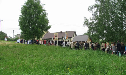 30 maja 2013 roku Kościół obchodził Święto Bożego Ciała. Zgodnie z osiemsetletnią tradycją, wierni naszej parafii po raz kolejny wzięli udział w procesji do czterech ołtarzy, manifestując w ten sposób swoją przynależność do Chrystusa i udowadniając, że nasz Kościół jest żywy, a religia jest nie tylko "sprawą prywatną". Tegoroczna procesja Bożego Ciała wiodła ulicami naszej wioski z kościoła, przez "Wysoką Górę", z powrotem pod kościół. Przygotowania do tej uroczystości zaczęły się już dzień wcześniej. Mieszkańcy domów koło których miała iść procesja, uprzątnęli swoje obejścia i drogę. Domy przystroili kwiatami, wizerunkami świętych i religijnymi emblematami. Przedstawiciele mieszkańców przysiółków naszej parafii ustawili ołtarze.