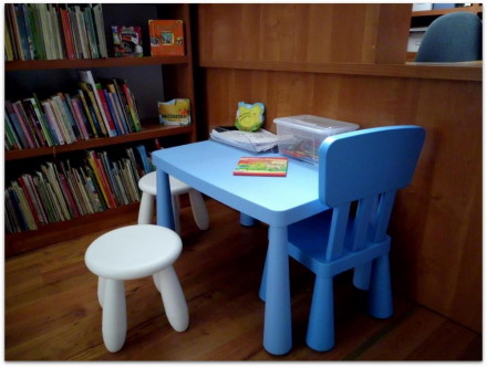 W bibliotece w Koźmicach Wielkich miejsce przeznaczone dla dzieci podzielone