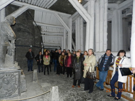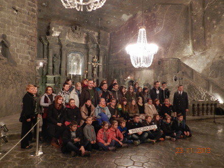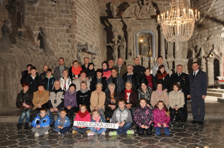 Po raz kolejny na prośbę Sołtysa i Rady Sołeckiej Koźmic Wielkich Prezes Kopalni Soli Wieliczka „ Trasa Turystyczna” pan mgr inż. Marian Leśny udostępnił nieodpłatnie zwiedzanie Trasy Turystycznej w Kopalni Soli w Wieliczce Park Kingi 10. W ubiegłym roku 2012 Kopalnię Soli TT zwiedzały dzieci z pięciu szkół z miejscowości Byszyc, Gorzkowa, Janowic i Koźmic Wielkich. W tym roku 23 listopada wraz z mieszkańcami Koźmic Wielkich i mieszkańcami parafii Matki Boskiej Częstochowskiej w Gorzkowie był ksiądz Proboszcz Adam Żurad. Trud organizacyjny tegorocznego zwiedzania wzięło na siebie Koło Gospodyń Wiejskich z Koźmic Wielkich wraz z sołtysem z Gorzkowa panem Adamem Czajczykiem. W trakcie zwiedzania naszej Kopalni uczestniczyliśmy we Mszy św. w Kaplicy św. Kingi ok. 100 m. pod ziemią. Uczestniczący we Mszy Świętej sami zdeklarowali się, aby ofiarę z tacy przekazać w całości na pomoc dla ofiar kataklizmu na Filipinach. Ponieważ pobyt pod ziemią trwał ok. sześciu godzin ( brały udział cztery grupy ) nie zabrakło czasu na odpoczynek w komorach Witos Górny – Budryk – Warszawa - Wisła. Czas był przeznaczony na grupowe dyskusje przy stole spożywając smaczny obiad serwowany przez miłą obsługę Karczmy Budryk. Należy dodać, że każdy prawie uczestnik wycieczki ma w rodzinie osoby pracujące bądź , które pracowały w Kopalni Soli. Takie wspólne zorganizowane wyjazdy integracyjne dzięki pomocy Kopalni Soli przyczyniają się do poszerzenia wiedzy o naszej lokalnej historii. Mamy nadzieję, że powtórzymy takie wydarzenie w roku 2014.