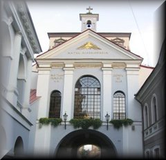 kaplica w Ostrej Bramie (Bramie Miednickiej) ze słynnym obrazem Matki Boskiej Ostrobramskiej. Miasto leży