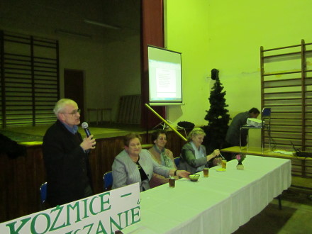 Prowadząca poinformowała zebranych, że każde spotkanie jest nagrywane na dyktafon. Nagranie jest pomocne w napisaniu relacji po nim. Każdy tekst jest autoryzowany. Przebieg spotkania jest fotografowany. Opracowanie po nim pisze prowadząca, przesyła do Jacka Kostrzewy, który umieszcza go na stronie internetowej Koźmic Wielkich. Zachęciła do zapoznania się z treścią opisu spotkania.Zaprosiła za stół prezydialny z napisem "Koźmice-Koźmiczanie" emerytowanych nauczycieli: Józefę Kowal, Janinę Piątek, Marię Cieślik obecnie Woźniak, Jerzego Pilikowskiego.