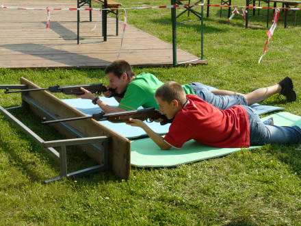 W sobotę 6 IX 2014 r. przy scenie koło „Orlika" poznaliśmy najlepszych w strzelaniu z broni pneumatycznej, popularnie nazywanej wiatrówką. Strzelano do tarczy z odległości 10 m w pozycji dowolnej. Wśród kobiet najcelniej strzelała Weronika Zych z Koźmic Małych zdobywając 28 pkt. Druga była Katarzyna Hoffman z 25 pkt. a trzecia Dorota Duda z 20 pkt. Większość pań strzelała pierwszy raz w życiu. Wśród mężczyzn zwyciężył uczeń klasy mundurowej Zespołu Szkół w Dobczycach Michał Pasek uzyskując 41 pkt. na 50 możliwych do zdobycia. Drugi był Grzegorz Wolanin z 39 pkt. a trzeci Jarosław Figiel z 34 pkt. Nagrody wszystkim uczestnikom wręczył sołtys Koźmic Wielkich Kazimierz Windak.