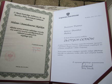 W 2002 r. Helena i Stanisław Skalscy obchodzili jubileusz 50. lecia pożycia małżeńskiego. Otrzymali medale i pamiątkowy dyplom od Wojewody Krakowskiego Jerzego Adamika, oraz dyplom który, wręczył im w Wieliczce w czasie uroczystości 14. 01. 2003 r. burmistrz miasta i gminy Wieliczka Józef Duda.