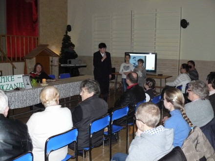 Stanisław Dziedzic jeszcze raz zachęcił zebranych do udziału tu w tej sali w występie grupy teatralnej z Koźmic Małych w dniu 24. 01. b.r. i w 206 spotkaniu z cyklu „Wieliczka-Wieliczanie" przedstawiając jego głównych prelegentów dr Macieja Korkucia naczelnika Biura Edukacji Publicznej Instytutu Pamięci Narodowej w Krakowie i dr Piotra Sadowskiego, geografa z Pcimia, wiceprezesa Polskiego Towarzystwa Historycznego w Myślenicach.