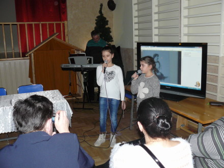 Przy akompaniamencie na organach Wojciecha Grochala, jego wnuczki: Gabrysia Róg i Amelka Róg z klasy pierwszej Sz. P. w Koźmicach Wielkich, zaśpiewały pastorałki: „Była noc" i „Śniegu cieniutki opłatek". Publiczność występ nagrodziła brawami.