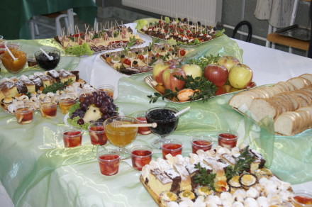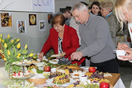 Stół Burmistrza, stoły ciastowy, serowy, wielkanocny, z przetworami, chlebowy, nauczycielski, pyszne lody i świeże soki z owoców i warzyw zachęcały do degustacji potraw, sałatek, wypieków, pierogów, zup, przetworów stworzonych wg. domowych, rodzinnych przepisów. Spotkali się w jednym miejscu przedstawiciele władz Miasta i Gminy Wieliczka - p. Urszula Rusecka Pełnomocnik Burmistrza ds. Edukacji, p. Bogusław Kośmider przewodniczący Rady Miasta Krakowa, p. Tomasz Machnik kierownik Wydziału Edukacji, Radni Miasta i Gminy Wieliczka, mieszkańcy okolicznych miejscowości, uczniowie szkół, ich rodzice, znajomi i przyjaciele gimnazjum. Przybywały całe rodziny. Kilkadziesiąt osób skorzystało z porad dietetyka, sprawdziło się w teście nt. mitów i faktów związanych ze zdrowym odżywianiem. Wielu spodobało się możliwość wypróbowania urządzeń do ćwiczeń w domu lub chociażby zabawy z hula-hop. Miejsca gdzie można było przysiąść zjeść i porozmawiać lub posłuchać muzyki były cały czas zajęte. Przez trzy godziny goście spacerowali, degustowali, rozmawiali i uśmiechali się do siebie.