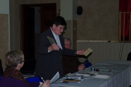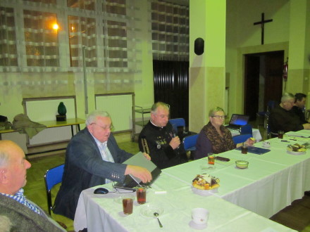 Jadwiga Duda: „Dziękuję Panu Mieczysławowi Dańdzie za prelekcję. Proszę abyśmy powstali i odmówili modlitwę „Wieczne odpoczywanie.. w intencji ś. p. Franciszka Domanika."