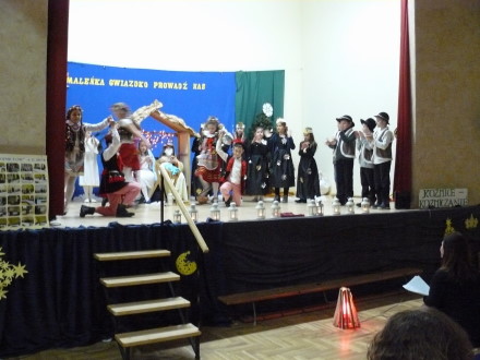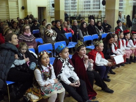 Uczniowie Szkoły Podstawowej im. Obrońców Westerplatte w Koźmicach Wielkich zaprezentowali program artystyczny pt. „Maleńka gwiazdko prowadź mnie". Program poświęcony był narodzinom Dzieciątka Jezus w Betlejem. Dzieci odgrywały Matkę Bożą, św. Józefa, pasterzy, Trzech Króli, którzy przynieśli dary Jezusowi. Uczniowie występ zakończyli piosenką o choince. W programie wystąpiło 30 uczniów z klasy: III a - Michał Bryl, Eliza Chwastek, Jolanta Desput, Krzysztof Dudzik, Michał Jasiński, Piotr Kania, Małgorzata Karp, Daria Kolasa, Jakub Kosałka, Kacper Kozłowski, Piotr Paryła, Agata Świerkosz, Zuzanna Zawiślak i klasy III b: Patrycja Bergel, Kamil Bożek, Zofia Czaja, Klaudia Domanik, Maciej Dziedzic, Dominik Grochal, Emilia Hajduk, Grzegorz Kuc, Nikola Kwiecińska, Emilia Mitan, Oliwia Ptak, Amelia Róg, Michał Sosin, Stanisław Wieczorek, Anna Zapadlińska, z klasy IV: Gabriela Romaniec i Kacper Ruśniok pod kierunkiem nauczycielek: Kingi Hajduk, Doroty Kabat, Katarzyny Kaczor.