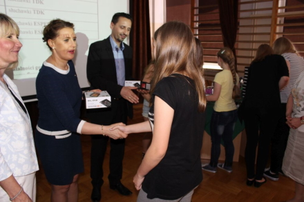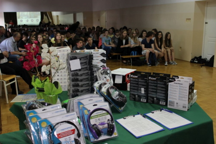 Uczniowie, za najciekawsze i najbardziej wartościowe prace, zostali obdarowani nagrodami o łącznej wartości 6600 zł - 32 tablety i 44 słuchawki. Nagrody w całości dofinansowane są przez Narodowy Bank Polski.