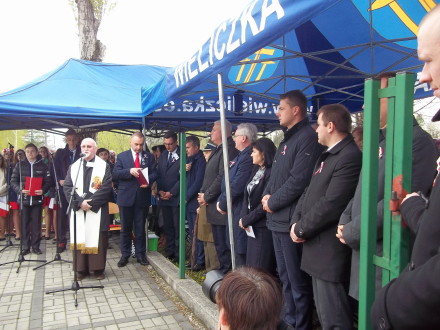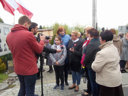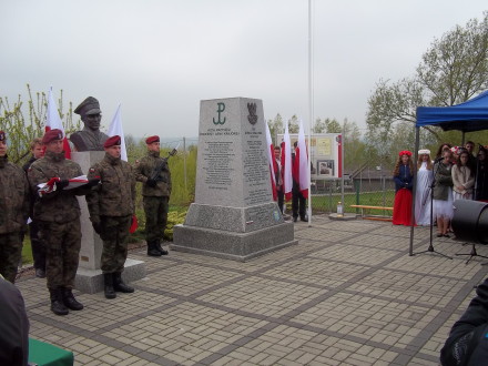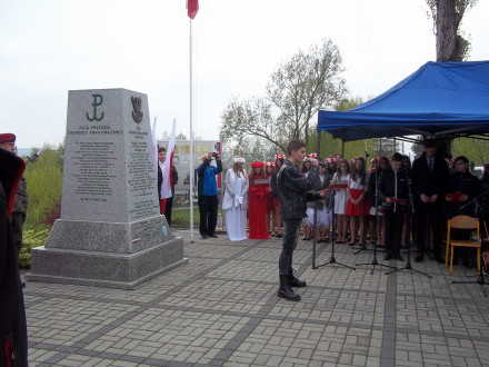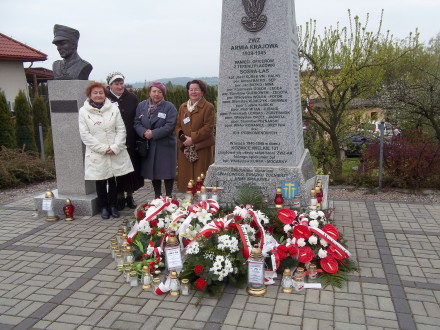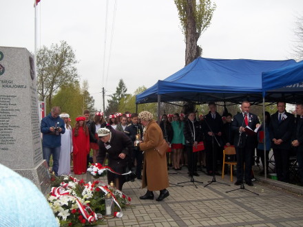 Do zebranych przemówił Artur Kozioł. Józef Gawron wręczył Urszuli Ruseckiej odznaką „Pro Patria" i zabrał głos. Następnie wystąpił Piotr Kurek, który wspomniał historię powstania pomnika oraz żołnierzy, którym go poświęcono. Zwrócił uwagę, że jednym z nich był Stanisław Guzikowski, który 75 lat temu został zamordowany w KL Auschwitz. Odznaczył Magdalenę Golonkę, kierownik Wydziału Kultury UMiG Wieliczka i Adama Panusia Odznaczeniami Pamiątkowymi Za Zasługi Dla ŚZŻAK. (22kwietnia br. w Wieliczce w sali „Magistrat" podczas spotkania wielkanocnego i walnego zebrania Klubu Przyjaciół Wieliczki to odznaczenie P. Kurek wręczył Jadwidze Dudzie.) Ojciec Jerzy Pająk poprowadził modlitwę w intencji żołnierzy ZWZ - AK Placówki „Sosna-Las". Głos zabrał emerytowany nauczyciel, Edward Jankowski z Zarządu SZŻAK w Krakowie. Tomasz Guzik, katecheta w gimnazjum wspomniał, że chór szkolny we współpracy z Fundacją „Wygrajmy Siebie" nagrał płytę pt. „Warto być patriotą". Płyty zostały rozdane gościom spotkania. Z programem artystycznym wystąpili uczniowie Gimnazjum w Koźmicach Wielkich. Katarzyna i Zuzanna Czop ubrane na biało i czerwono zaprezentowały wiersz o polskiej fladze. W występie słowno - muzycznym młodzież pieśnią, wierszem, tańcem podkreślała wartość flagi, która obok godła jest symbolem wolnego i niepodległego państwa, łączy wszystkich Polaków. Publiczność występ nagrodziła gromkimi brawami. Przed pomnikiem wiązanki kwiatów złożyli: wicewojewoda, burmistrz, starosta, delegacja Stowarzyszenia „Klub Przyjaciół Wieliczki", Klubu Historycznego, mieszkańcy. Zapalono znicze.
