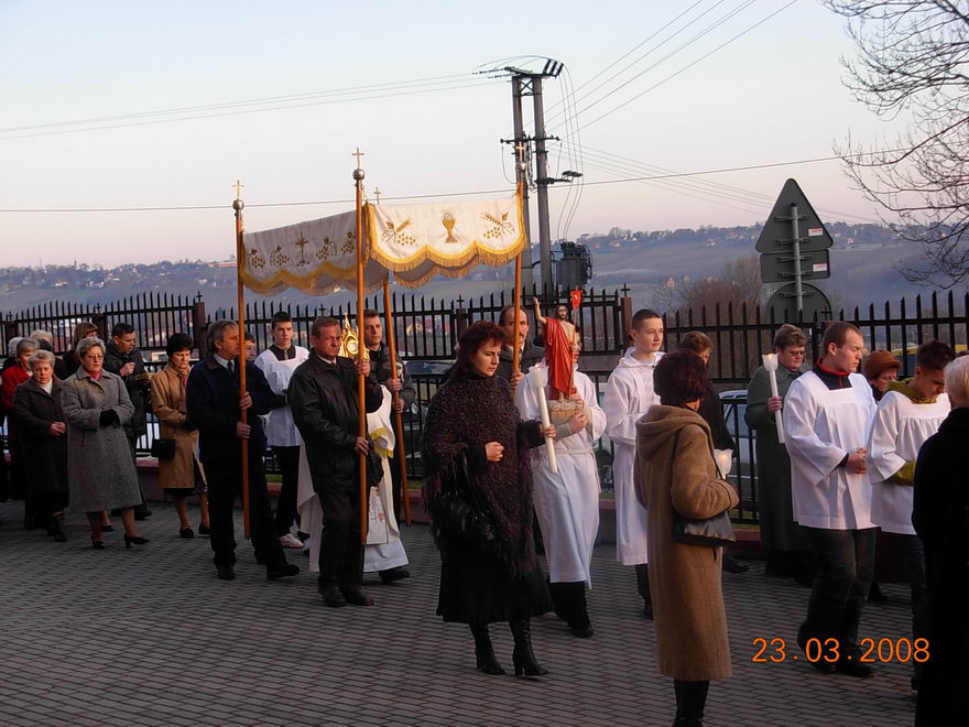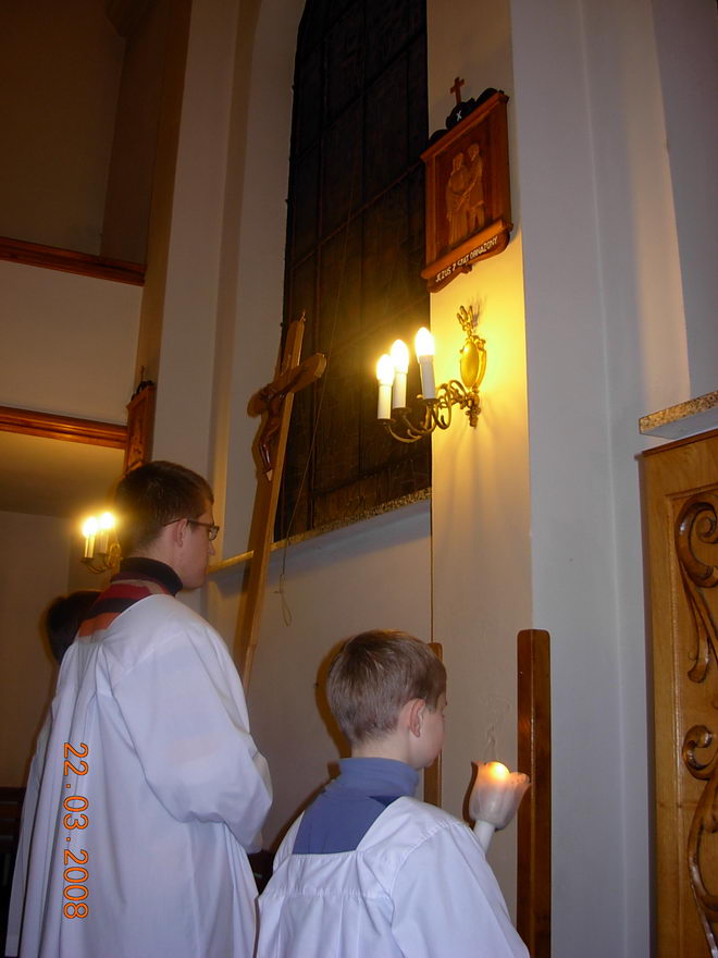 Parafianie cały wieczór adorowali Pana Jezusa, adorację zakończyła Droga Krzyżowa, prowadzona przez członków Oddziału Akcji Katolickiej.