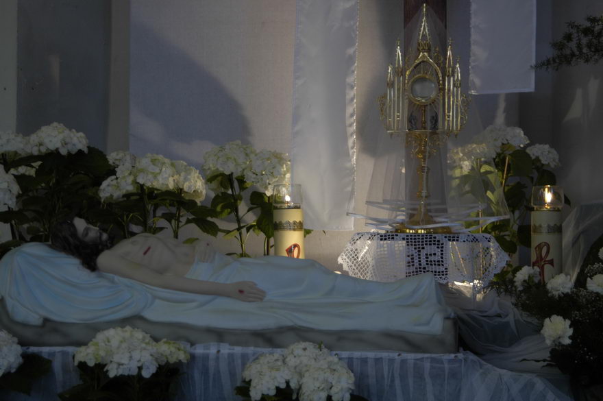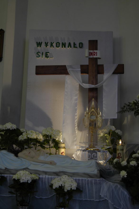 Po komunii św. ks. proboszcz przeniósł Najświętszy Sakrament do Grobu Bożego.