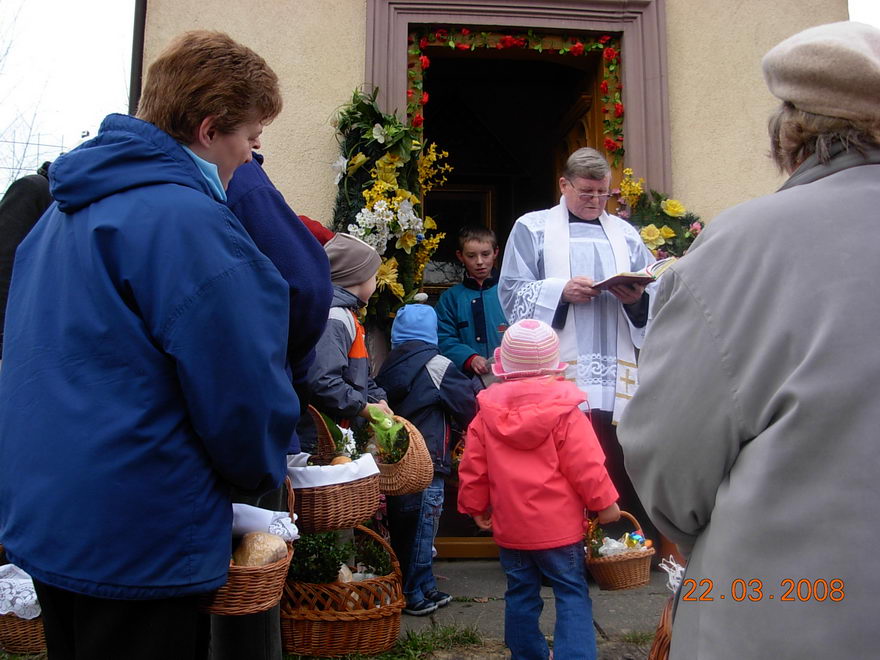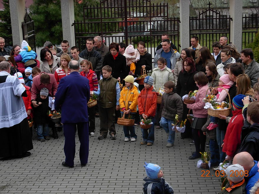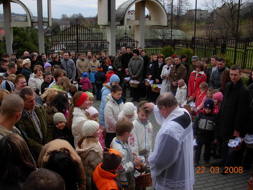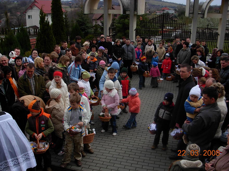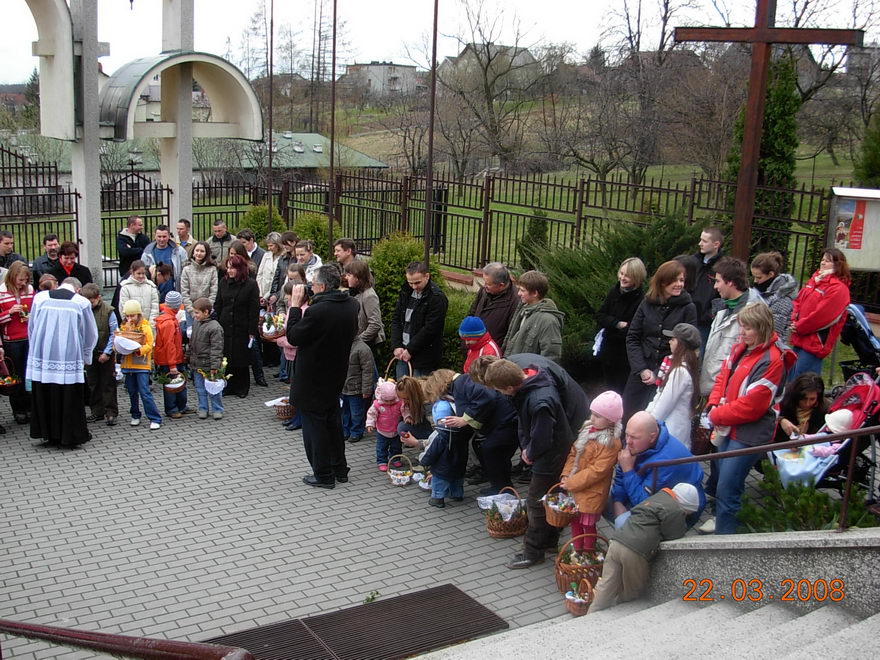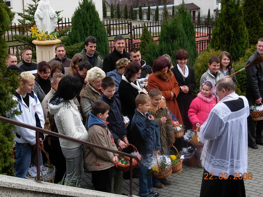 W godzinach przedpołudniowych w wyznaczonych miejscach i koło kościoła święciliśmy pokarmy.