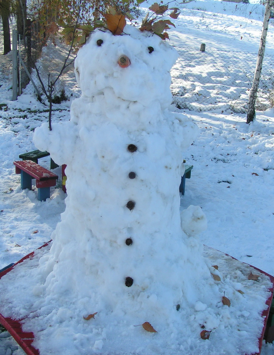Jak bardzo się cieszyliśmy, że spadł śnieg - widać poniżej. Ten pan z marchewkowym nosem, w liściastej czapce i białym płaszczu - to nasz "Bałwanciunio"!