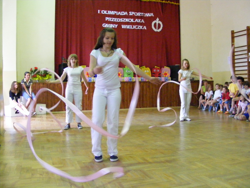 Imprezę zakończył pokaz tańca z wstążką w wykonaniu absolwentek Przedszkola Samorządowego w Koźmicach Wielkich, a obecnie uczennic koźmickiego Gimnazjum.