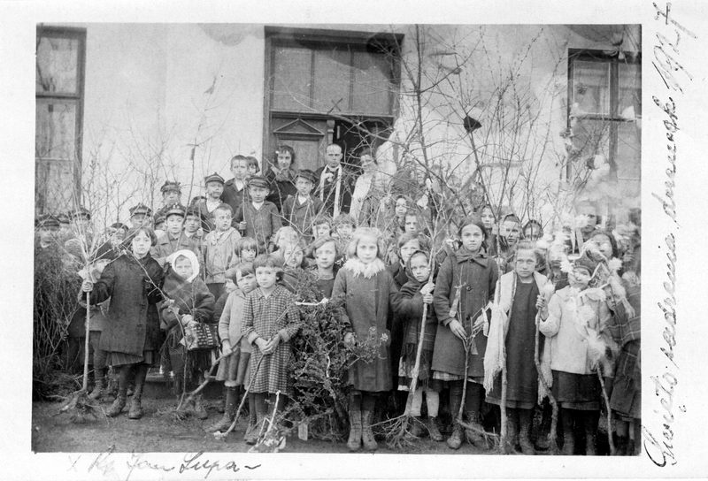 Szkolne świeto sadzenia drzewek w roku 1927.