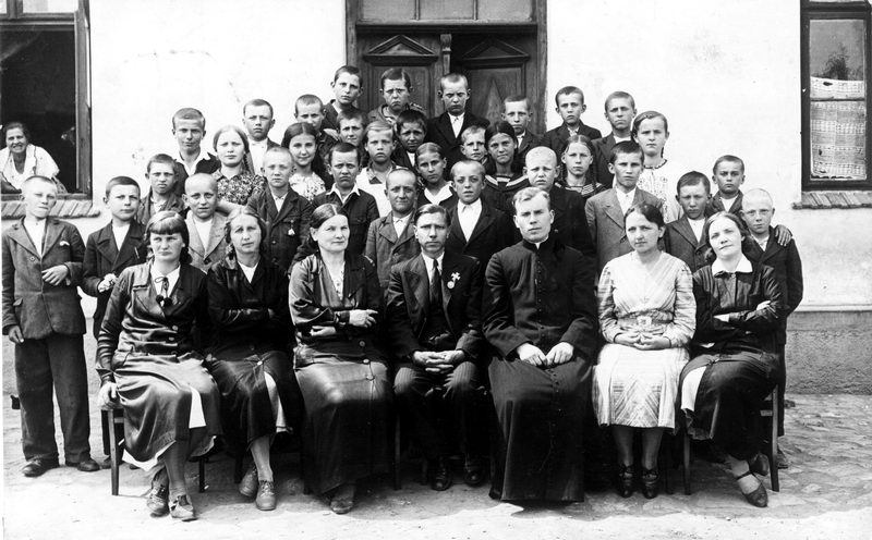 stoją z tyłu: ks. Zbigniew Stankowicz, Klemens Surówka, N. Sobowski