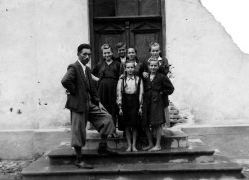 Z tyłu za gronem nauczycielskim widać korzenie słynnego olbrzymiego wiązu , który oczywiście był zasadzony przez Króla Jana III Sobieskiego podczas drogi pod Wiedeń. Wiąz był świadkiem wielu uroczystości wiejskich, które odbywały się przeważnie przy budynku szkoły.