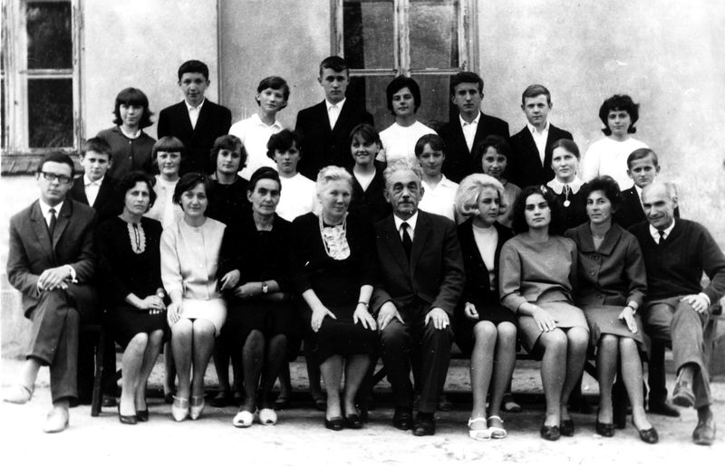 siedzą od lewej : NN, Józefa Rozwadowska, Teresa Michalik-Nieciąg, Helena Poznańska, Anna Surówka, kier. szk. Klemens Surówka (w latach 1944-1973), Anna Tuteja, Jadwiga Turek-Mika, Józefa Kowal, Władysław Pirowski.