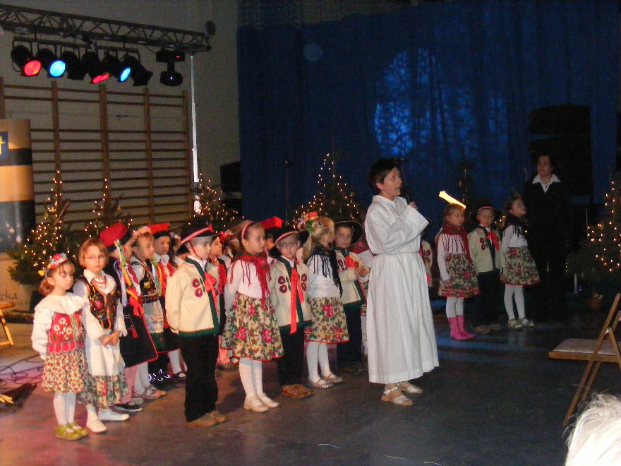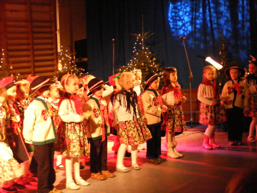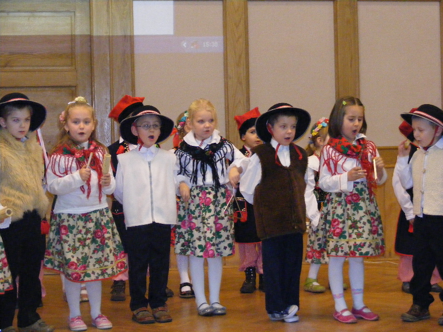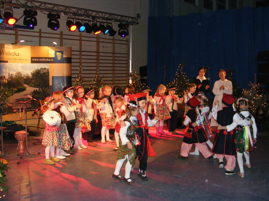 W trzech scenach przedszkolaki ubrane w stroje regionalne zaprezentowały wiersze o tematyce bożonarodzeniowej, zaśpiewały takie kolędy jak: „Wśród nocnej ciszy", „Przybieżeli do Betlejem", „Dzisiaj w Betlejem", „W żłobie leży" i piosenkę „Jo se górol", a także zatańczyli „Krakowiaka" i „Zbójnickiego".