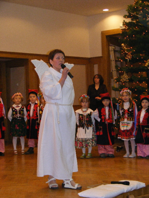 W trwającą magiczną atmosferę Nowego 2009 Roku wprowadziły zgromadzonych gości dzieci z koźmickiego Przedszkola, które pod opieką p. Ewy Jamróz przygotowały i zaprezentowały opowieść betlejemską w zmienionej na potrzeby Spotkania formie. Przedszkolaków w grze aktorskiej wspomagali jak zawsze rodzice. Występ rozpoczął p. Andrzej Dyrda (prywatnie tatuś Michała), który brawurowo zagrał na trąbce kolędę „Cicha noc". Następnie Małgorzata Dzięgiel (mama Patryka) profesjonalnie recytowała wiersz wprowadzający zebranych w tematykę przedstawienia, a Dorota Wolanin (mama Mikołaja) jak przystało na Anioła iście ze świętym spokojem ogłosiła wszystkim radosną nowinę !