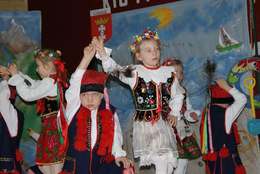 Przedszkolaki ubrane w kolorowe stroje w ciekawy i różnorodny sposób zinterpretowały motto przewodnie przeglądu. Dzieci w opowieściach słowno-muzycznych przemierzyły Polskę od Tatr do Bałtyku prezentując bogaty folklor i tradycje różnych regionów naszej Ojczyzny (Małopolska, Śląsk, Kujawy i Pomorze).