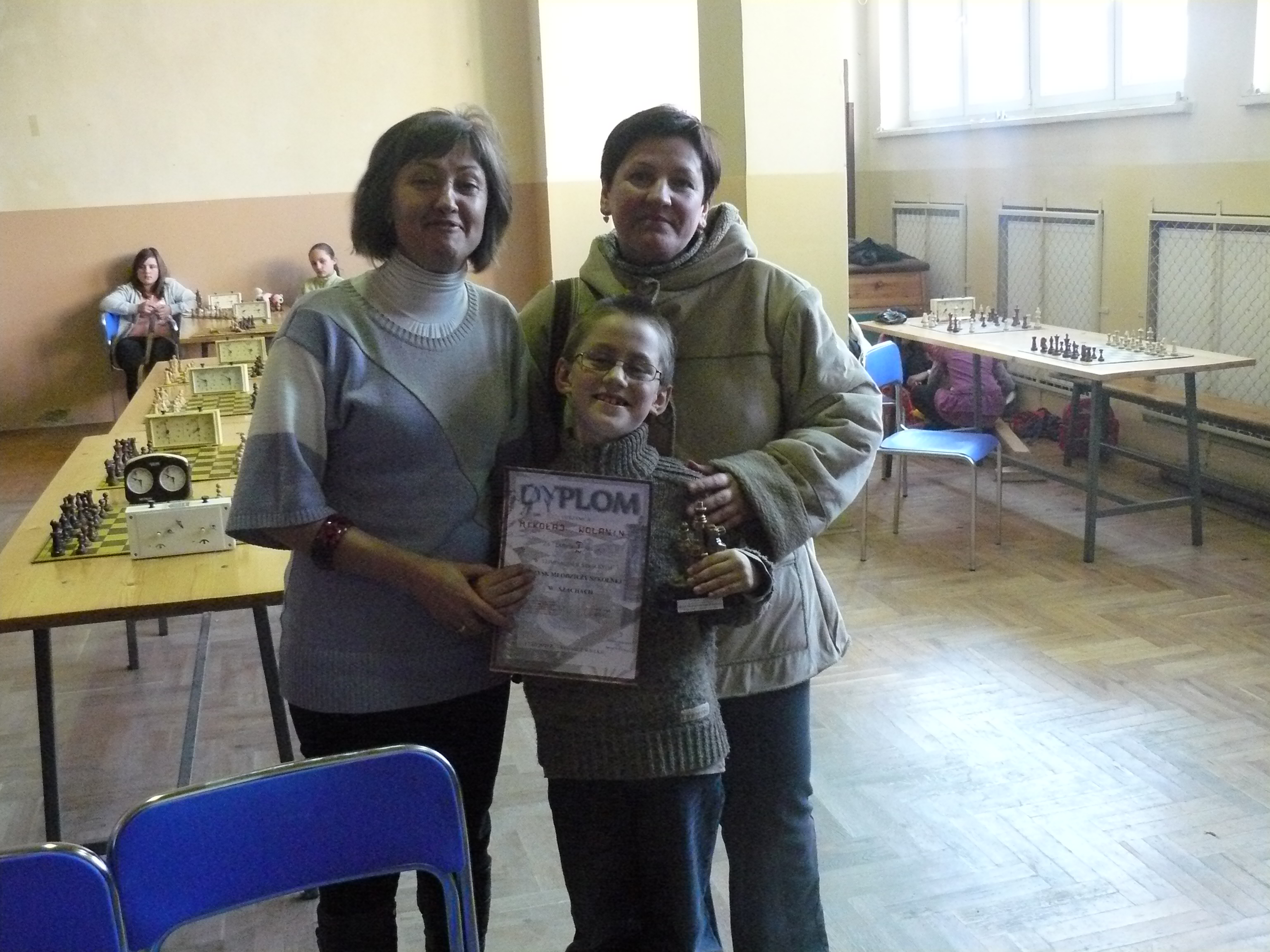 W turnieju chłopców zwyciężył Mikołaj Wolanin z klasy I wygrywając wszystkie partie. Po 6 punktów zdobyli kolejni Dominik Malec z klasy III b, Sebastian Czop z klasy VI. Czwarty Grzegorz Wolanin z klasy V zdobył 5 pkt. i awansował do reprezentacji szkoły na zawody gminne. Rezerwowi Mariusz Baran, Kamil Jochacz, Przemysław Jania, Wojciech Trędowicz, Marcin Wieczorek uzyskali również po 5 punktów. Sklasyfikowano 31 zawodników. Wszyscy dzielnie walczyli o zwycięstwa, był płacz po przegranych i okrzyki radości po wspaniałych wygranych.