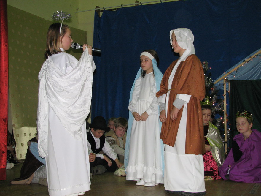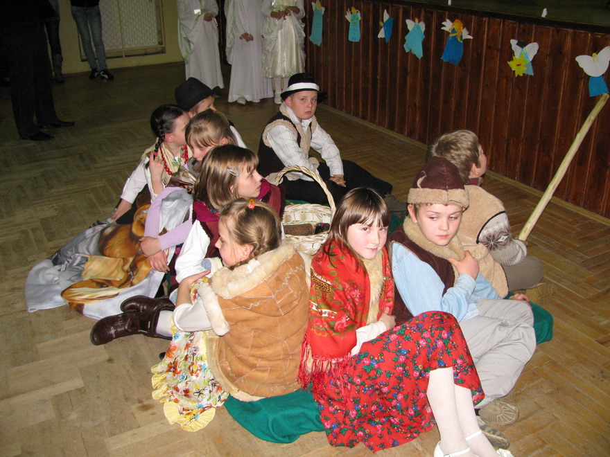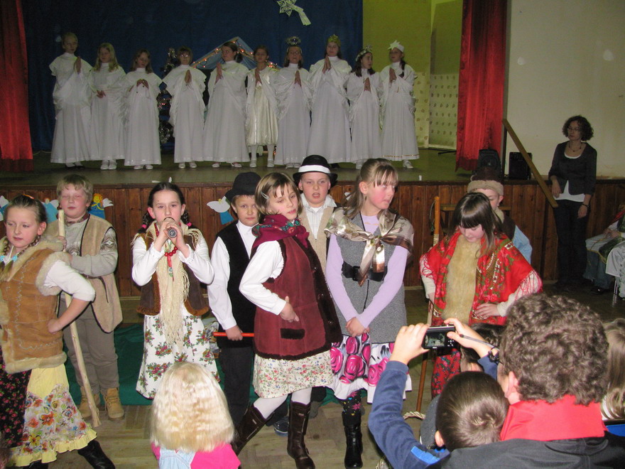 Spotkanie rozpoczął ksiądz Stanisław, który przywitał zebranych i podziękował wszystkim za przybycie. Następnie uczniowie klas trzecich Szkoły Podstawowej w Koźmicach Wielkich przedstawili „Jasełka", przygotowane pod kierunkiem swoich nauczycieli. Po występach uczniów, ks. Stanisław poświęcił opłatki. Uczestnicy spotkania łamiąc się opłatkami składali sobie wzajemnie życzenia.