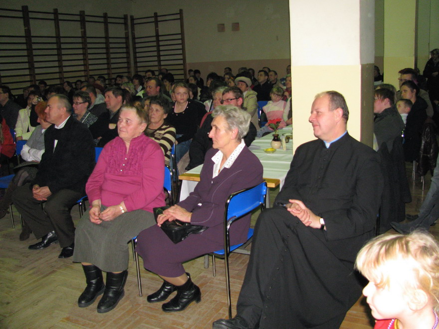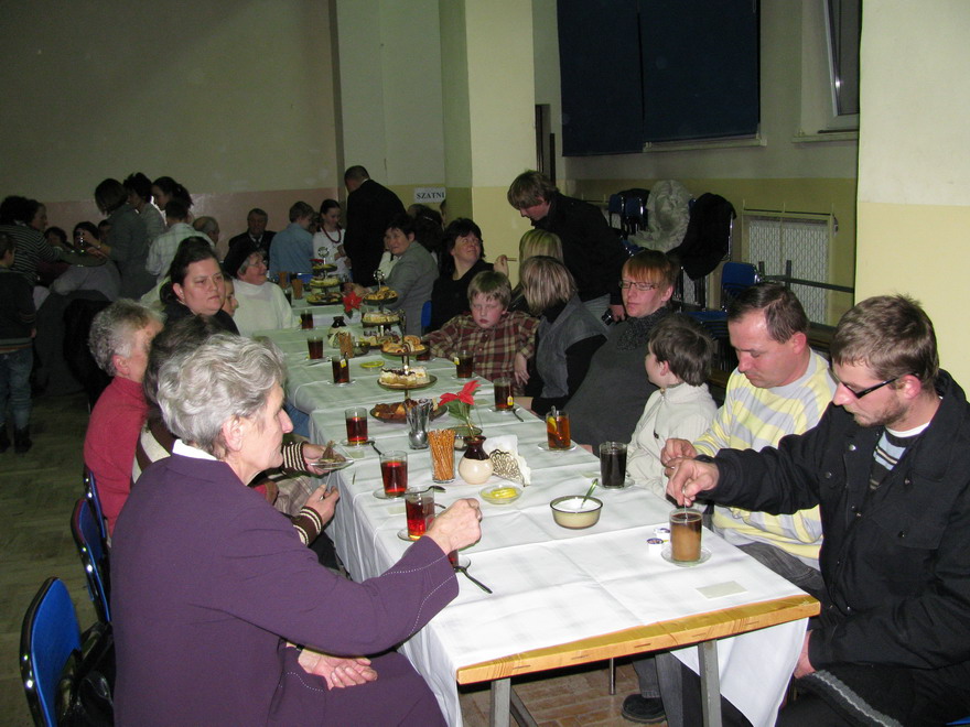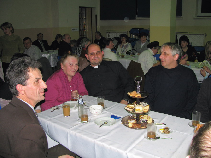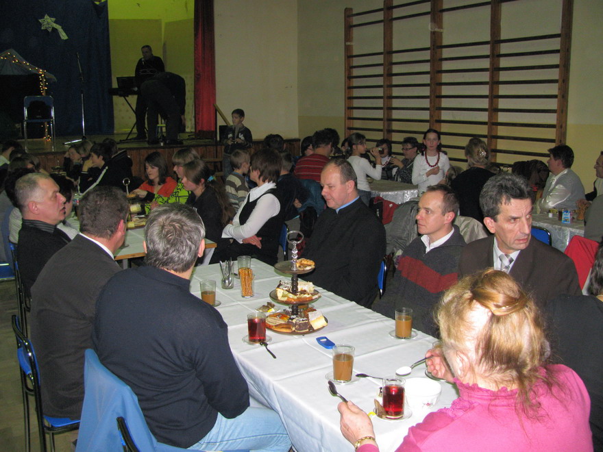 Spotkanie opłatkowe w tym roku przygotowali członkowie Akcji Katolickiej, przy pomocy; ks. proboszcza Stanisława Basisty, sołtysa p. Józefa Piątka, pań z Koła Gospodyń. To oni postarali się o przygotowanie sali, poczęstunku, podania kawy, herbaty i ciasta.