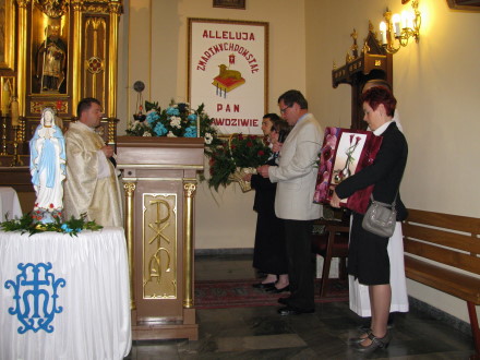 Dziękujemy Ci za troskę o nasze życie religijne i za każde skierowane do nas Słowo. Swoją postawą uświadamiasz nam, iż wzajemne poznawanie się, jest warunkiem autentycznej integracji i jedności. Jesteśmy wdzięczni za Twoją obecność na zebraniach wspólnot oraz organizacji działających w naszej parafii, i za indywidualne rozmowy.