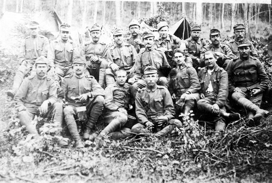 Fot. Na froncie I Wojny światowej, wśród żołnierzy mieszkaniec Bugaja Wojciech Batko, rok 1917