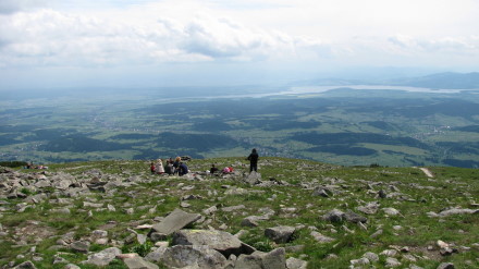 Po około godzinie męczącego marszu przez las wyszliśmy na Sokolicę (1367 m.).