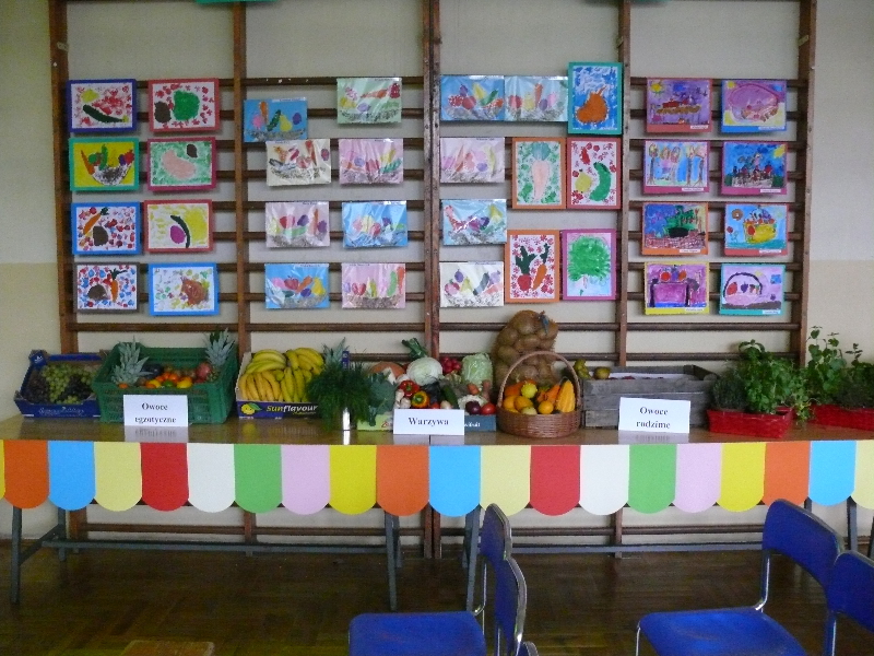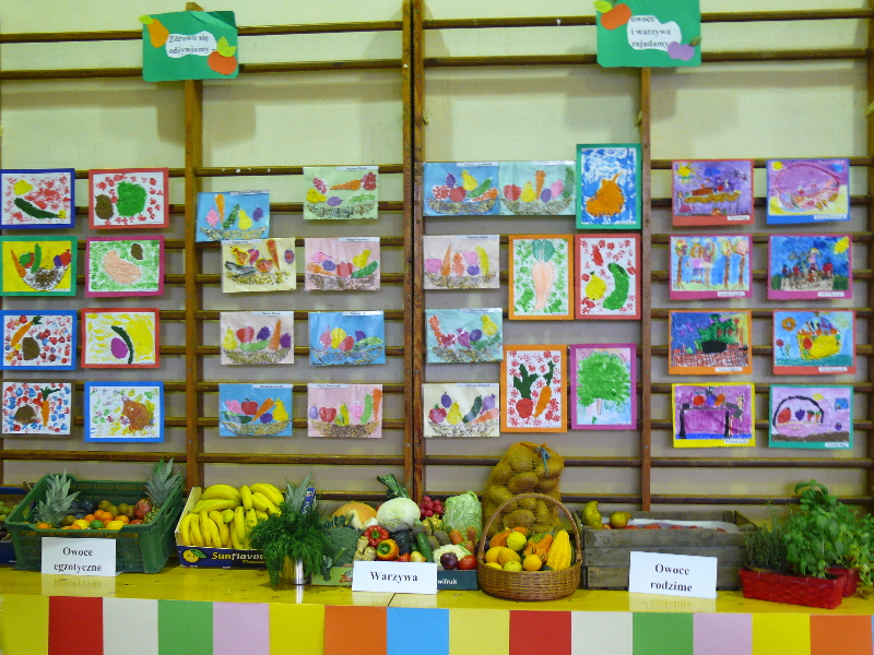 Finał, poprzedzony starannymi przygotowaniami, zgromadził liczne grono dzieci, rodziców i pracowników naszego przedszkola. Zaprezentowano wystawę plastyczną wychowanków, zatytułowaną: „Zdrowo się odżywiamy, owoce i warzywa zjadamy", której towarzyszył stragan owoców rodzimych, egzotycznych oraz warzyw.