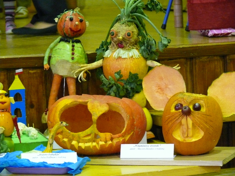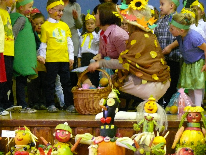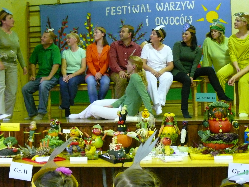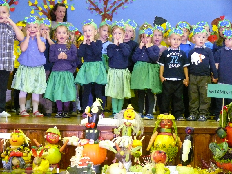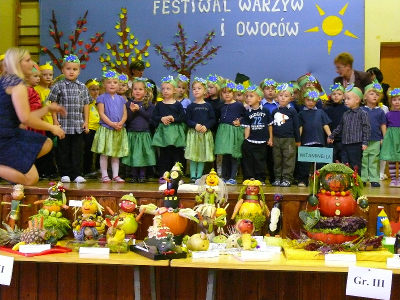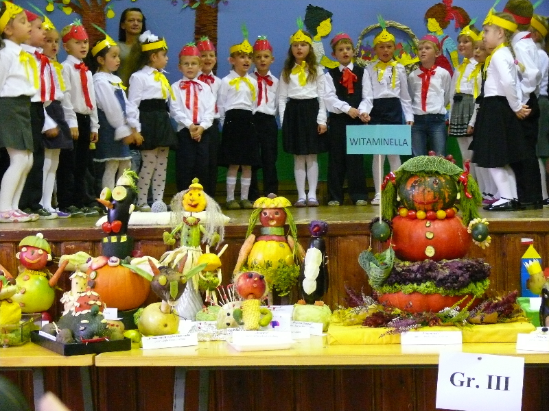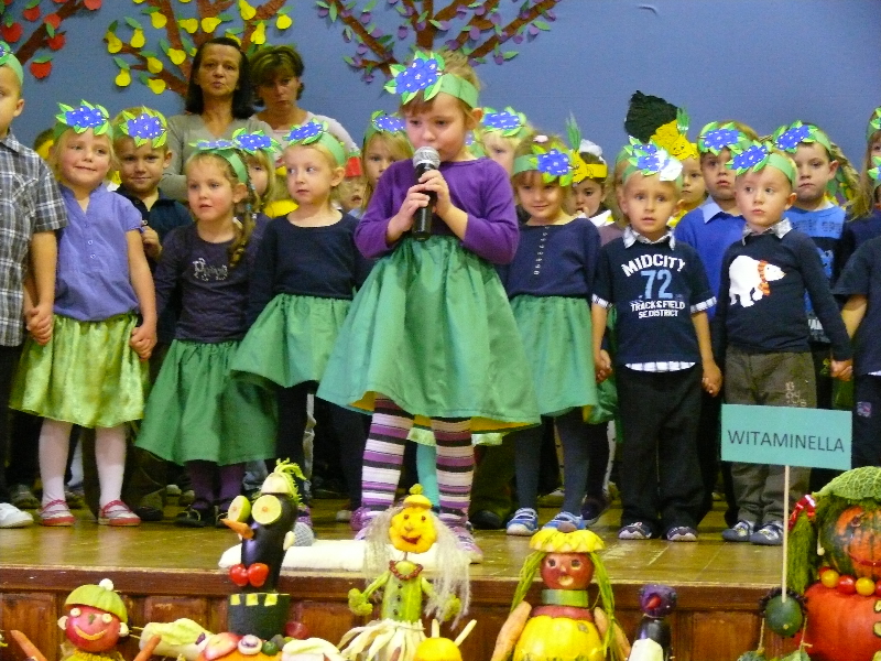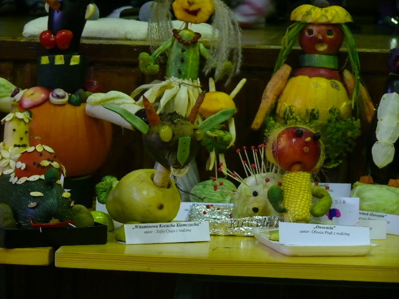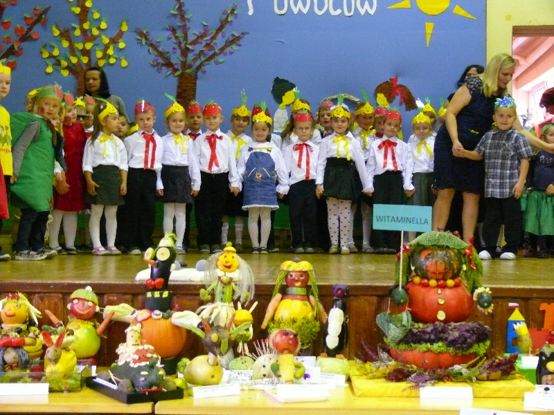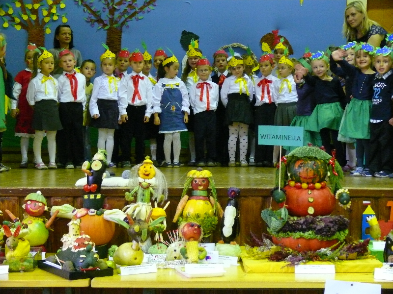 Po pasowaniu nadszedł czas na rozstrzygnięcie konkursu na „Witaminowego stworka", ogłoszonego wcześniej w przedszkolu. Zainteresowanie przerosło najśmielsze oczekiwania organizatorów, do konkursu zgłosiło się 39 rodzin, a poświęcony czas, inwencja i zaangażowanie dzieci i rodziców w dzieło tworzenia postaci, w całości składających się z warzyw i owoców, było godne podziwu.