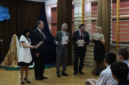 W ceremonii rozdania nagród uczestniczyli: Dr Werner Köhler, Wojciech Kozak, Grzegorz Baran, Urszula Rusecka oraz Elżbieta Obal-Dyrek - dyrektor Gimnazjum w Koźmicach Wielkich.