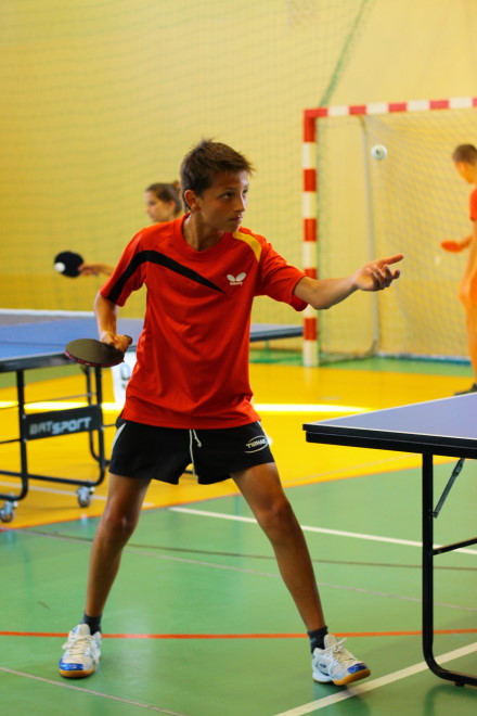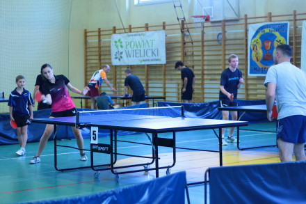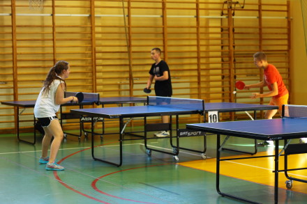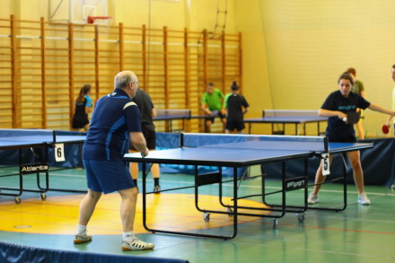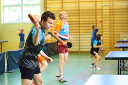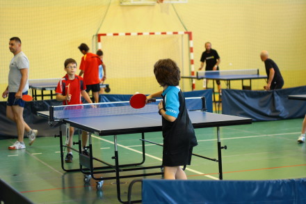 przy stole - IX Otwarty Turniej Tenisa Stołowego.