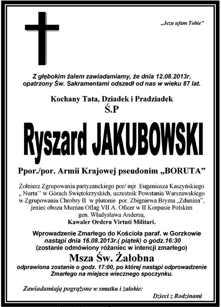 Zmarł Ryszard Jakubowski PS "BORUTA"