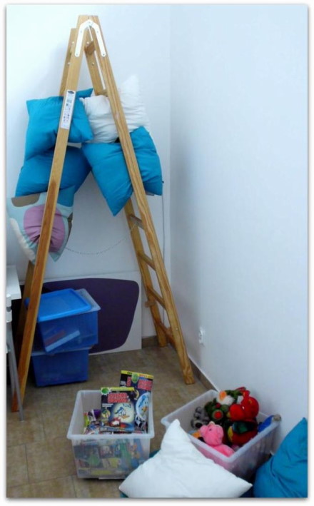 Drugą strefa służy zabawom. Znajdują się tu dywany i poduszki, na których