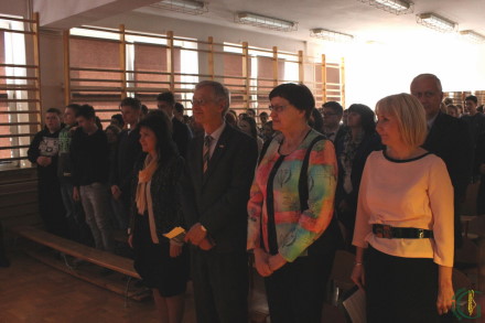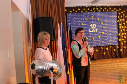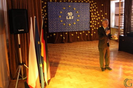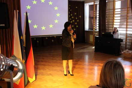 Po odśpiewanym w języku polskim i niemieckim hymnu Unii Europejskiej i powitaniu przybyłych gości przez panią Elżbietę Obal-Dyrek Dyrektor Gimnazjum naszego gimnazjum głos zabrała pani Urszula Rusecka zastępca burmistrza Miasta i Gminy Wieliczka, która podziękowała Konsulowi Republiki Federalnej Niemiec za patronat i umożliwienie realizacji programu DSD w gminie Wieliczka. Zwracając się do gości i młodzieży przypomniała o roli Polski w historii Europy oraz nawiązała do 10 rocznicy polskiego członkostwa w Unii Europejskiej. Pani Burmistrz podkreśliła, że nauka języków obcych jest środkiem do poznawania krajów Unii Europejskiej i odgrywa dużą rolę w rozwoju naszego kraju i demokracji.