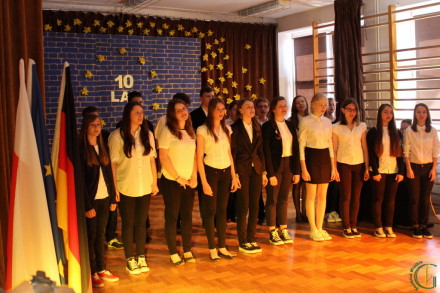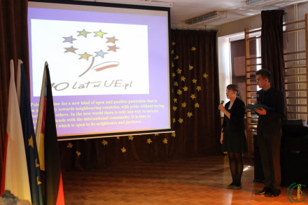 Uczniowie gimnazjum przedstawili prezentacje w języku polskim i angielskim o Unii Europejskiej, później pierwszoklasiści uczący się języka niemieckiego w systemie DSD zaprezentowali swoje osiągnięcia oraz przedstawili dwujęzyczny polsko-niemiecki program artystyczny. Młodzież, jak na Europejczyków przystało komunikowała się w języku polskim, angielskim i niemieckim, śpiewała piosenki, tańczyła balet, hip-hop, taniec szkocki i irlandzk