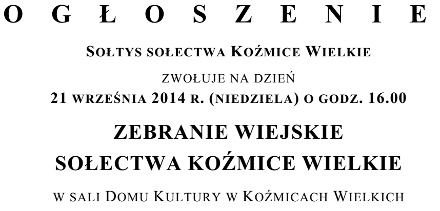 Ogłoszenie Sołtysa Koźmic Wielkich