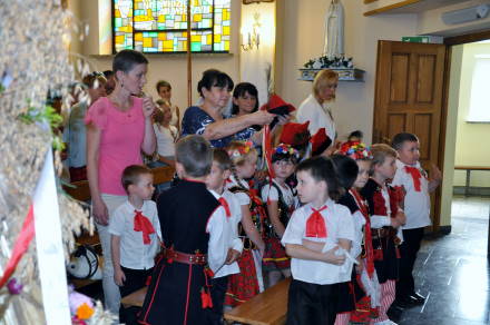 Teraz Msza Święta, którą uświetnili muzykanci orkiestry z Byszyc i wystrojone przedszkolaczki. "Dożynki, dożynki, wieniec dożynkowy" - i ksiądz Tadeusz, wieniec nam poświęcił...