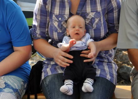 Takie wydarzenia łączą pokolenia - najstarszy uczestnik korowodu dożynkowego – pan Antoni (92 lata) i najmłodszy - maleńki Lucuś (2 miesiące)