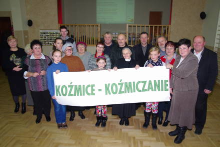 Wszystkich zapraszam do wspólnego zdjęcia pod nowym napisem „KOŹMICE - KOŹMICZANIE", który przyniósł mi Św. Mikołaj a wykonał go Artur Grzybek, syn Mariana Grzybka, byłego nauczyciela w tutejszej podstawówce, właściciel Firmy FTOIGO w Wieliczce przy ul. Limanowskiego, który przygotowuje do druku zaproszenia i afisze na spotkania „Wieliczka-Wieliczanie" i zeszyty „Biblioteczki Wielickiej".