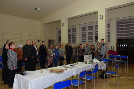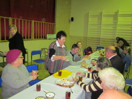 Na zakończenie spotkania wszyscy stojąc i trzymając się za ręce zaśpiewali „Barkę" po czym zasiedli przy stole, na którym członkinie Koła Gospodyń Wiejskich położyły ciasto, częstując kawą i herbatą. Wszyscy rozmawiali ciesząc się z faktu bycia razem.